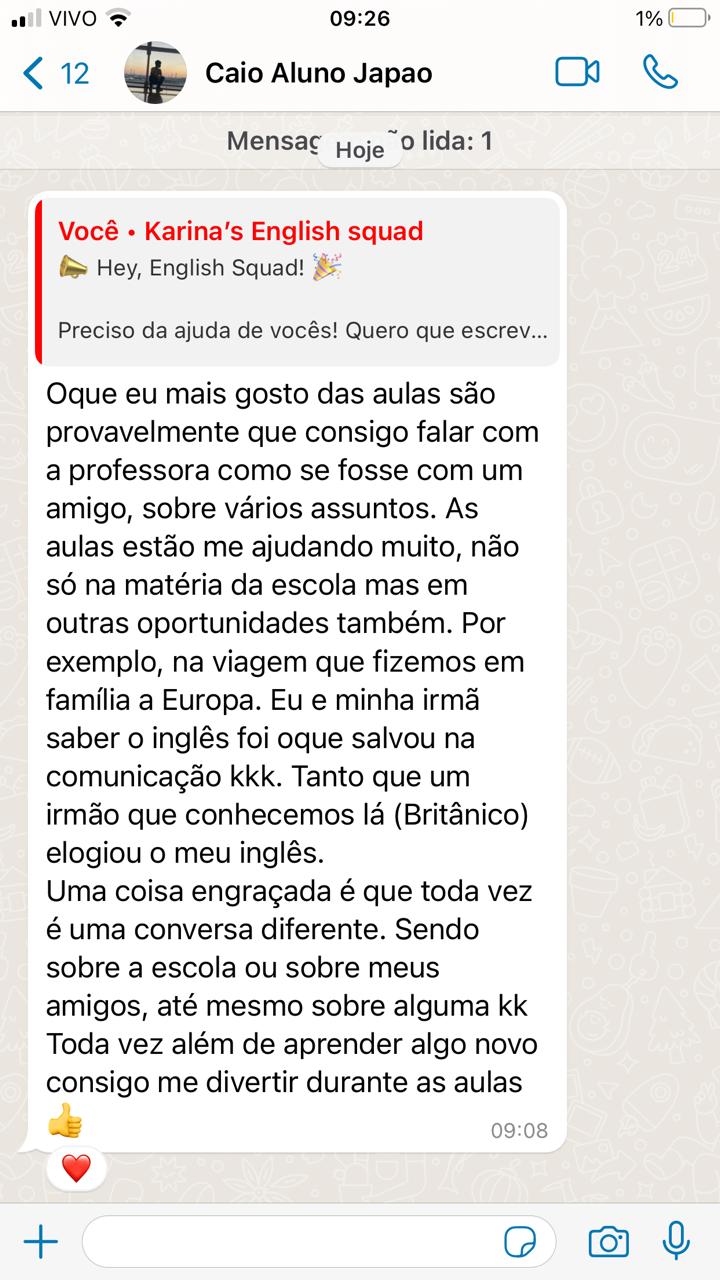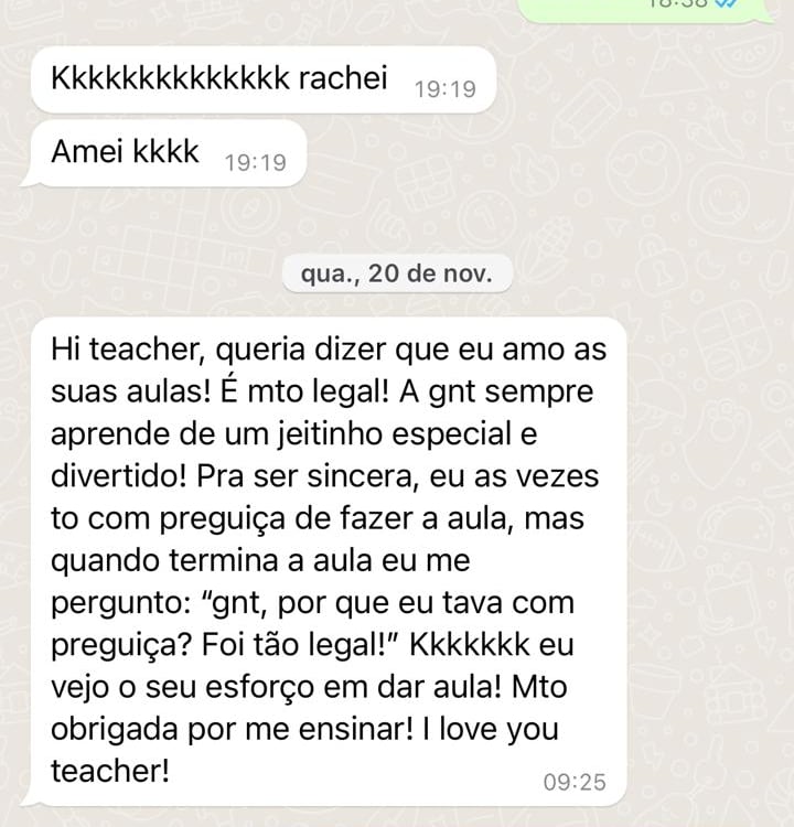 Aulas online ao vivo, turmas pequenas e acompanhamento próximo.